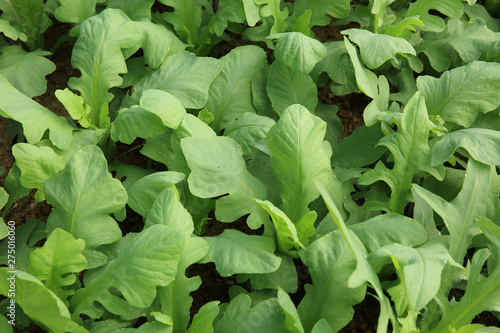 Green Indian Lettuce Plants Growing At Vegetable Garden